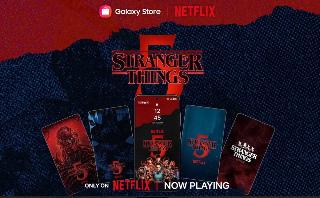Con el cierre de “Stranger Things”, Samsung Electronics y Netflix les brindan a los fans la oportunidad de celebrar la temporada final de la icónica serie que ha marcado la cultura pop durante casi una década. A partir del 12 de enero, los usuarios de Samsung Galaxy en 186 países podrán descargar un tema y fondos de pantalla exclusivos de “Stranger Things” a través de Galaxy Store[1], disponibles sin costo adicional por tiempo limitado para quienes descarguen o abran la app de Netflix. Imágenes icónicas de un fenómeno cultural Desde su debut en 2016, “Stranger Things” ha sido uno
